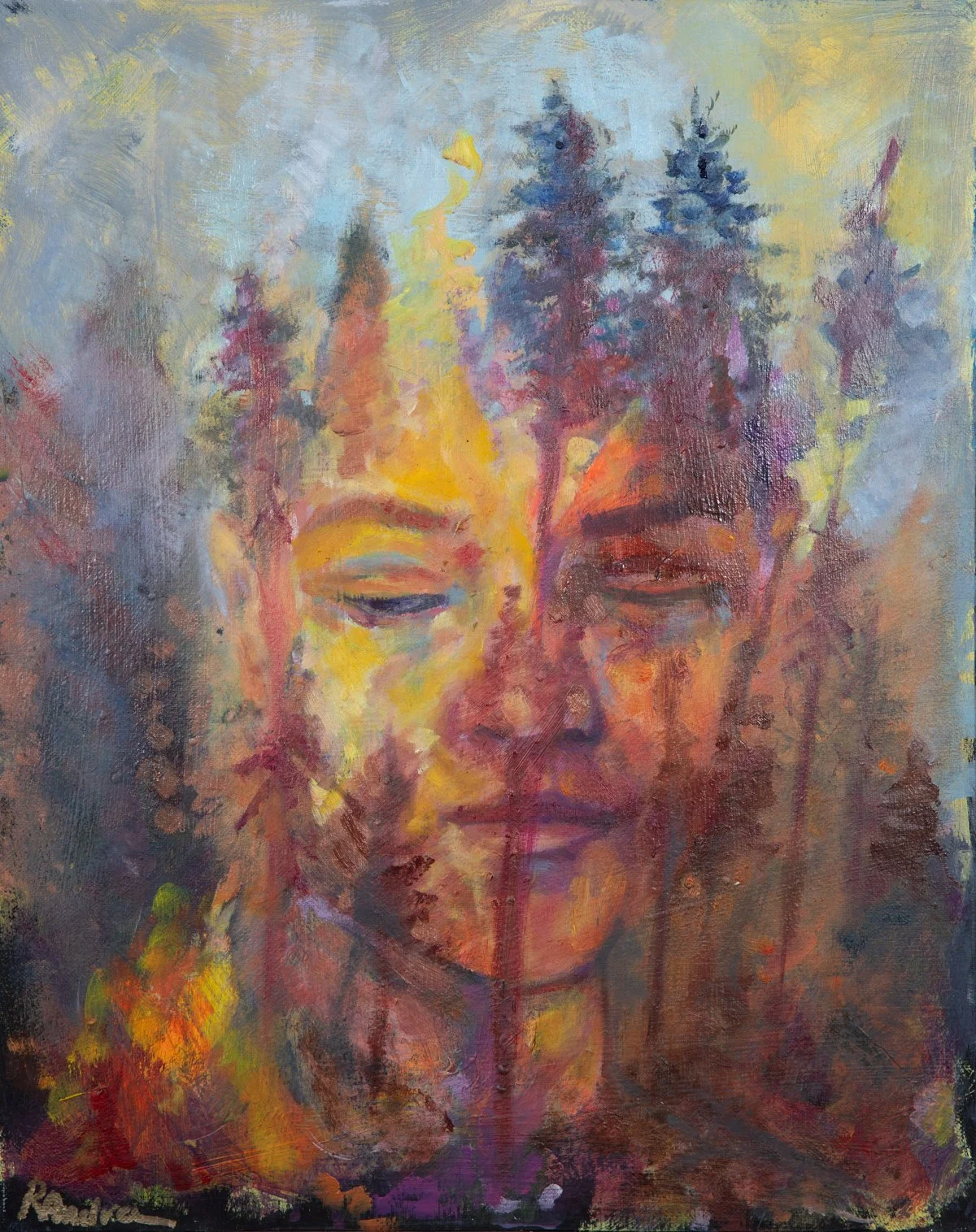 Nicole Salkey, a Toronto musician, has created audio soundscapes for select paintings in the show. Each is a reinterpretation through sound of the visual exploration of our connection with nature, and an invitation to immerse yourself more deeply in the dialogue through another sense. As you engage with the collection, you may wish to experiment with how sight impacts sound and sound impacts sight, adding new and potentially surprising layers to your experience.